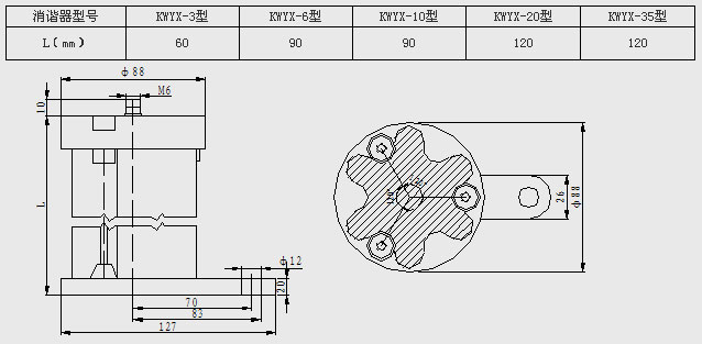 消諧器的外形及尺寸見圖1。不同型號消諧器的直徑都相同,只是長度不同。